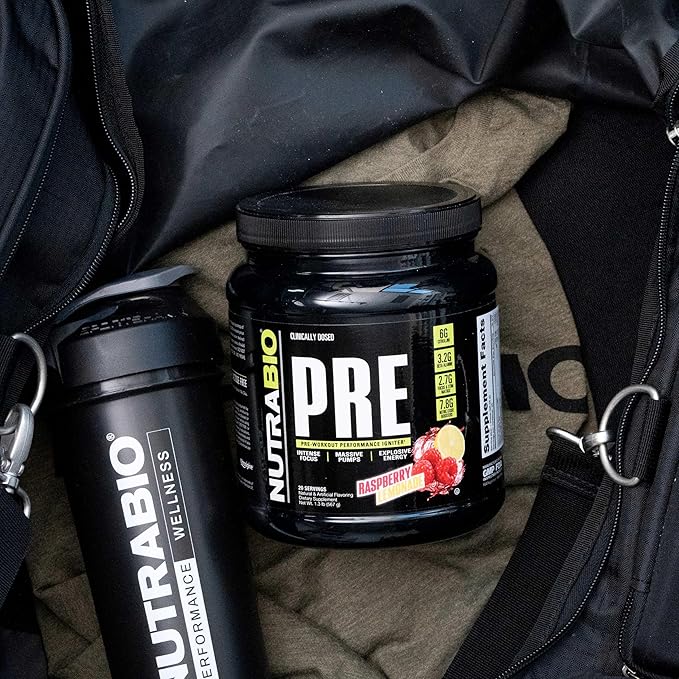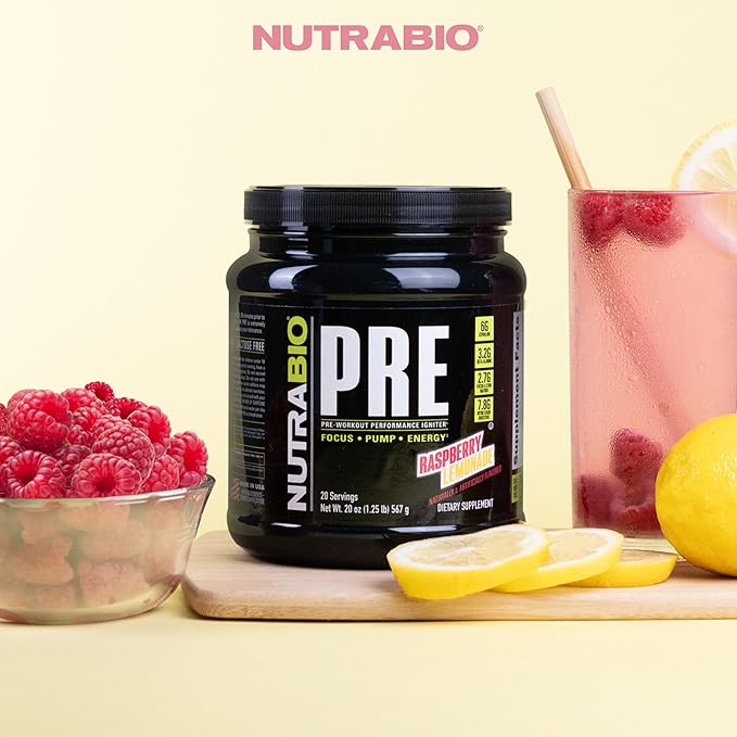NutraBio PRE Workout Powder - Old Formula- Sustained Energy, Mental Focus, Endurance - Beta Alanine, Creatine, Caffeine, Electrolytes - 20 Servings - Raspberry Lemonade