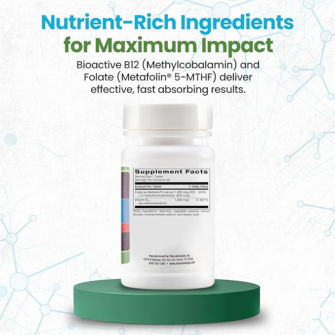 - ADVANCED METHYLATION SUPPORT - Neurobiologix B12 Folate provides essential nutrients for optimal methylation. Our MTHFR supplement supports vital processes like DNA synthesis and cell division, promoting overall body wellness.