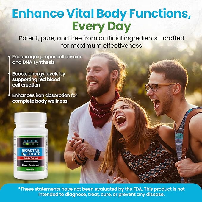 - SUPPORTS ESSENTIAL BODY FUNCTIONS. Our methylated folate supplement formula promotes red blood cell production and iron metabolism. Neurobiologix methylated B12 helps sustain energy levels and supports your body’s everyday performance.