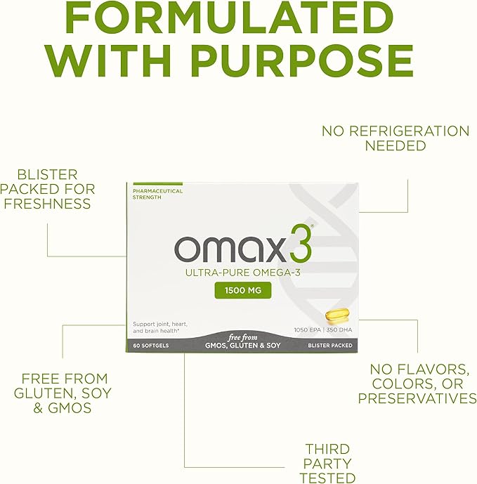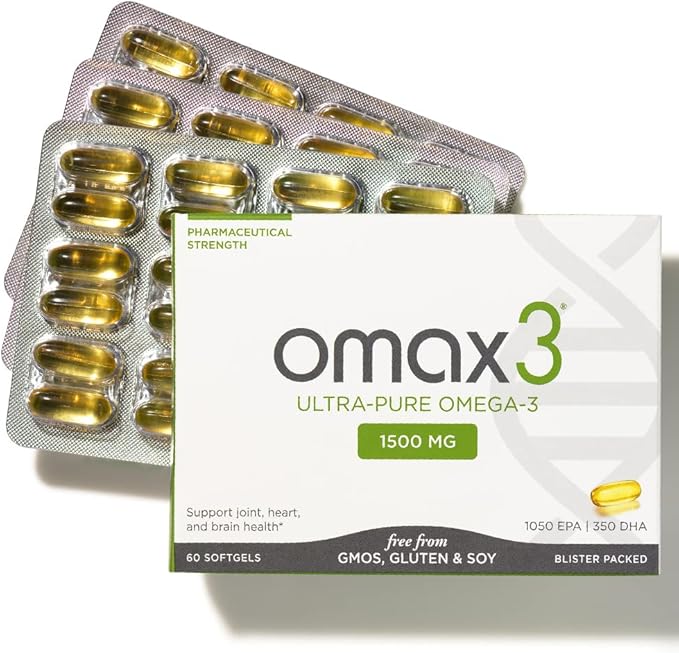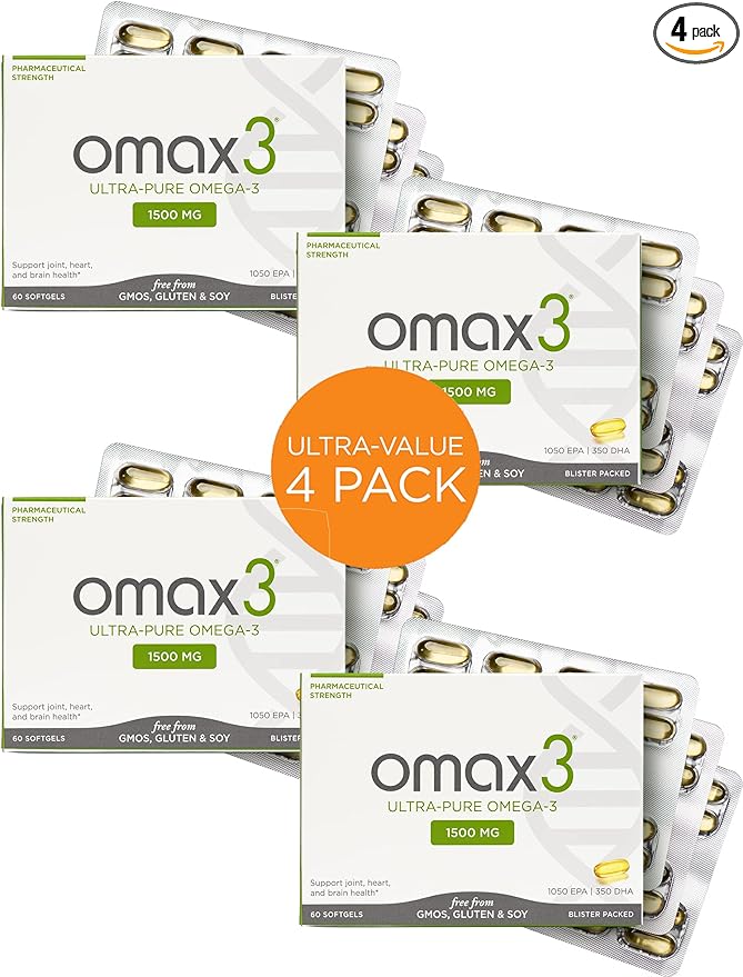 Omax3 4 Boxes Ultra-Pure Omega-3 Fish Oil Pills | High Concentration EPA DHA,1500 MG, Gluten Free, Non-GMO, Made in USA, 240 Softgels Blister Packs (4 Boxes)