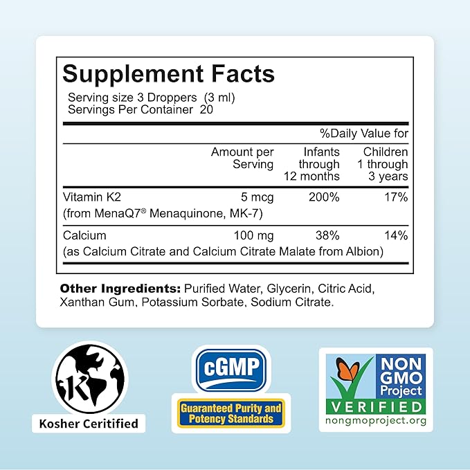 Nature's Nutra Strong Calcium, Plus MenaQ7 K2, Premium Liquid Calcium for Baby, Infant and Children, Natural Flavor, Non-GMO, Kosher, 2 Fl. Oz (60ml)