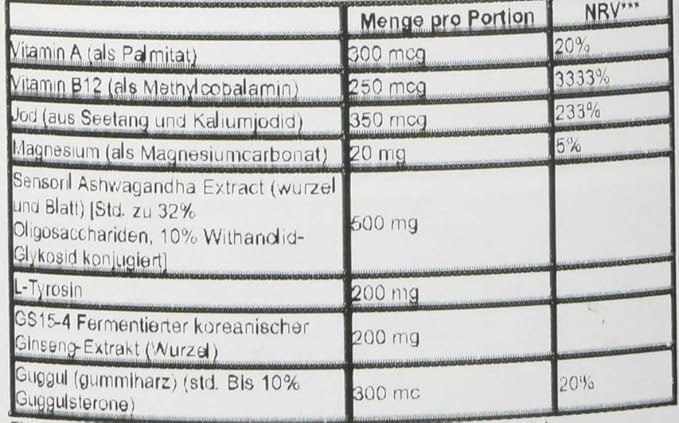 - Primary Supplement Type : Ashwagandha extract, Iodine, L-Tyrosine, Vitamin A, Vitamin B12