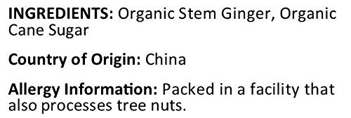- USDA ORGANIC CERTIFIED: All organic ingredients: organic stem ginger and organic cane sugar.