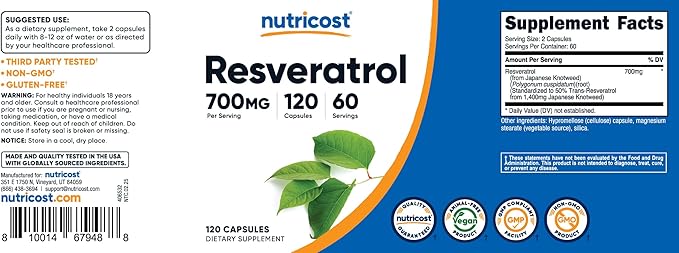 - Each capsule delivers a potent dose of 700mg of Resveratrol, providing a convenient and effective way to incorporate this beneficial compound into your routine
