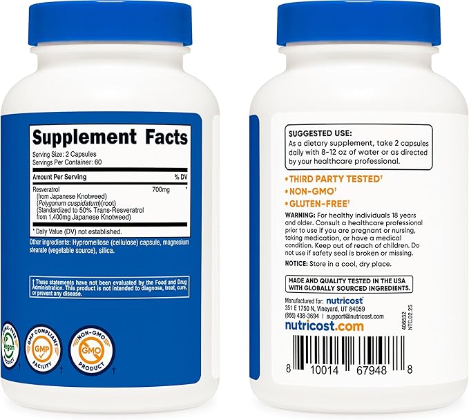 Nutricost Resveratrol 700mg; 120 Vegetable Capsules - 50% Trans-Resveratrol (3 Bottles)