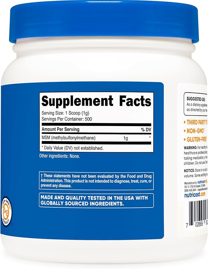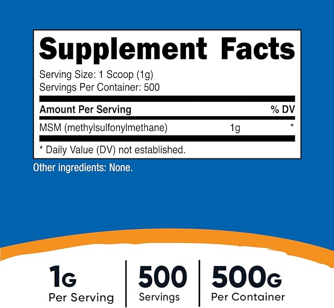 - 1 Gram of MSM Powder Per Serving (500 Servings)