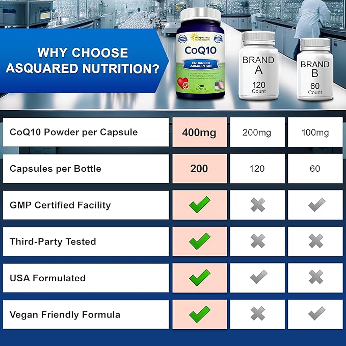 aSquared Nutrition CoQ10 (400mg Max Strength, 200 Capsules) - High Absorption Vegan Coenzyme Q10 Powder - Ubiquinone Supplement Pills, Extra Antioxidant CO Q-10 Enzyme Vitamin Tablets, Coq 10 400 mg
