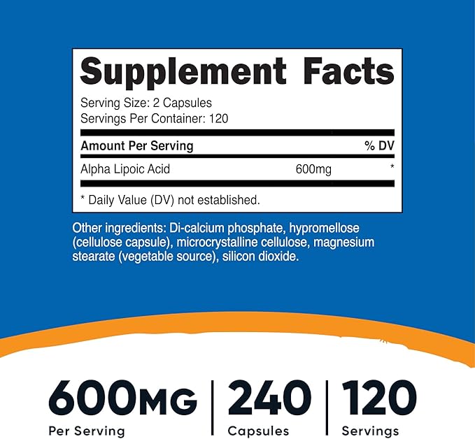 - 600mg Per Serving (300mg Caps) of Alpha Lipoic Acid