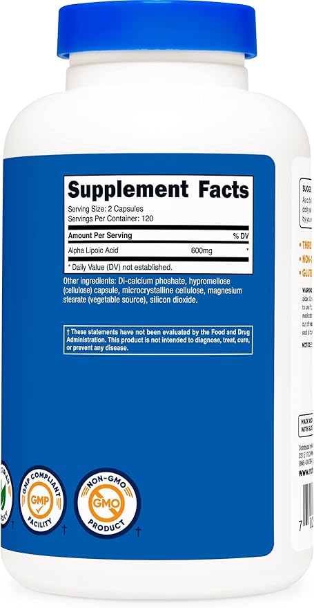 - 120 Servings of Alpha Lipoic Acid Per Bottle