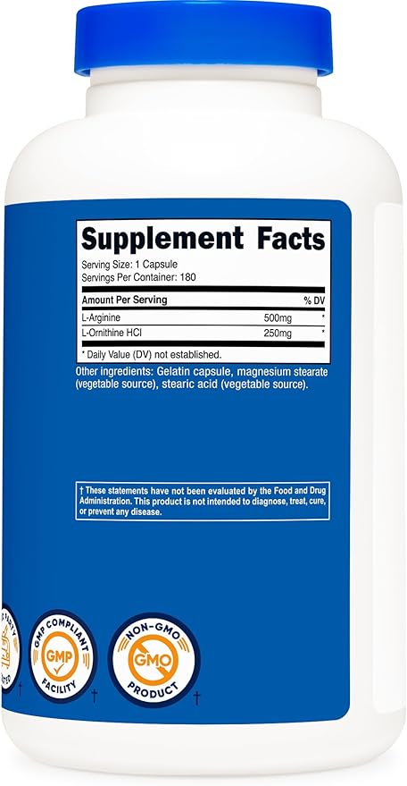 - 750mg of L-Arginine + L-Ornithine Per Serving (180 Servings)