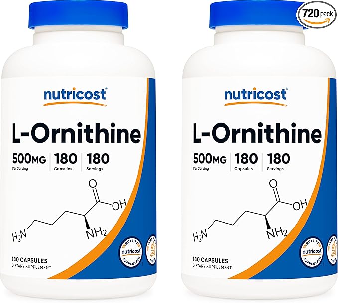 Nutricost L-Ornithine 500mg; 180 Capsules (2 Bottles)