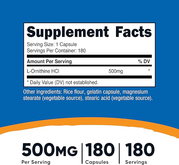- 500mg of L-Ornithine Per Serving (180 Servings)