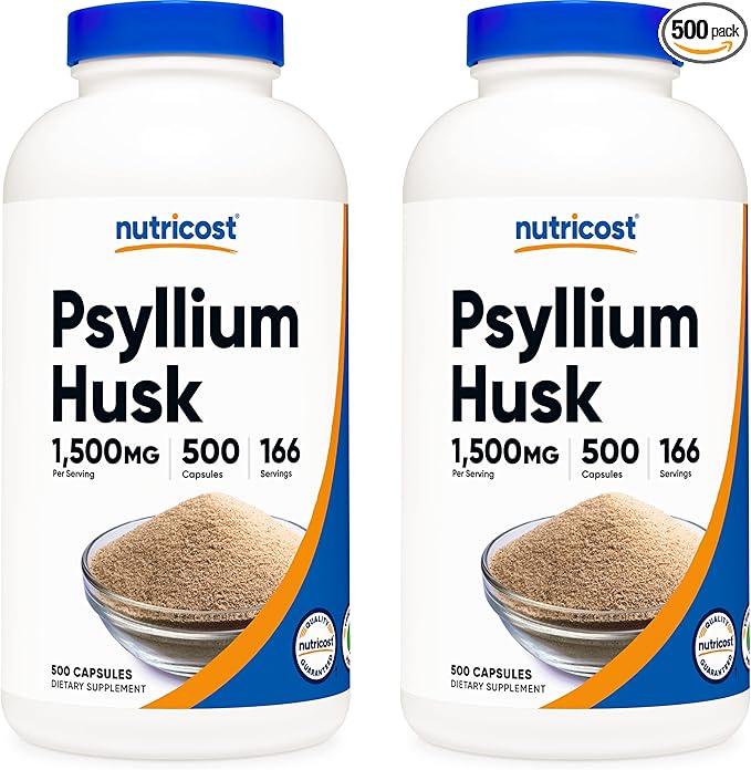 Nutricost Psyllium Husk 1500mg; 500 Capsules (2 Bottles)