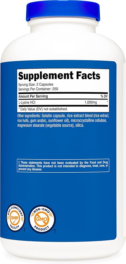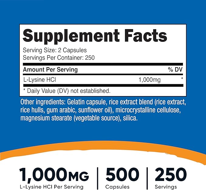 - 500mg of Premium L-Lysine Per Capsule, 1000mg Serving