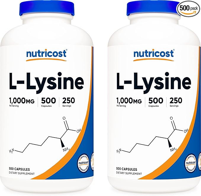 Nutricost L-Lysine 500mg (1000mg Serving), 500 Capsules (2 Bottles)