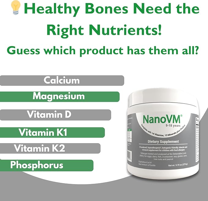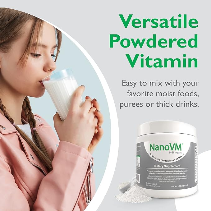 - Allergen-Free Daily Vitamins - NanoVM is a safe dietary supplement for children with food allergies and unique nutritional requirements. Our kids' multivitamin has no detectable limit for eggs, dairy, fish, crustaceans, soy, corn, tree nuts, and peanuts, so your child can enjoy it without the fuss.