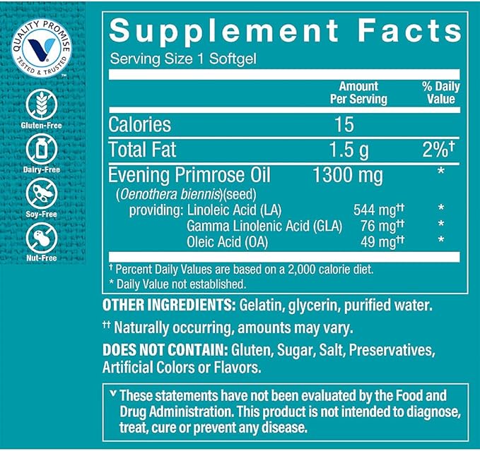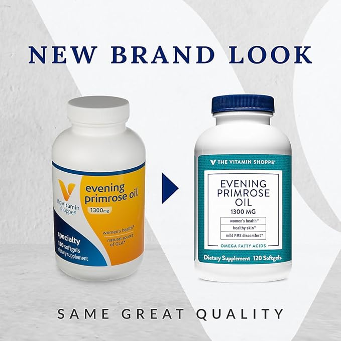 The Vitamin Shoppe Evening Primrose Oil 1,300MG, Natural Source of GLA (Gammia Linolenic Acid), Supplement for Women's Health & Hormonal Balance (120 Softgels)