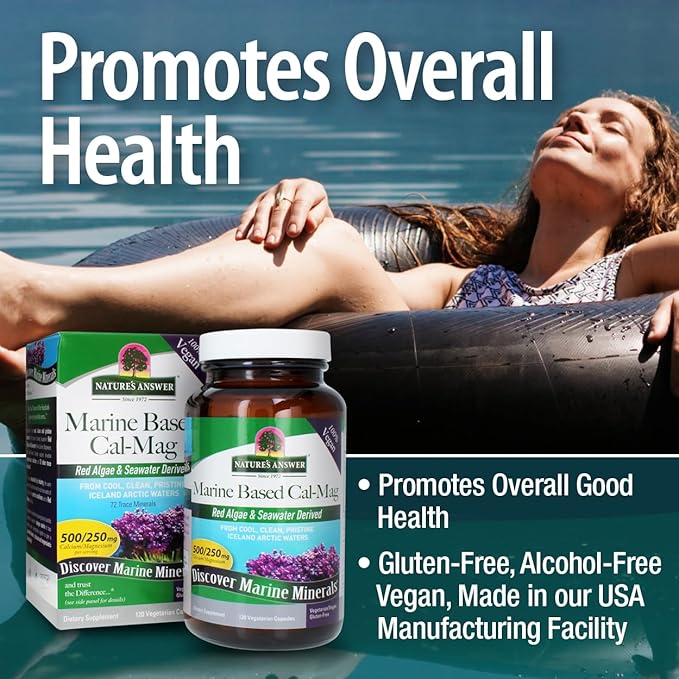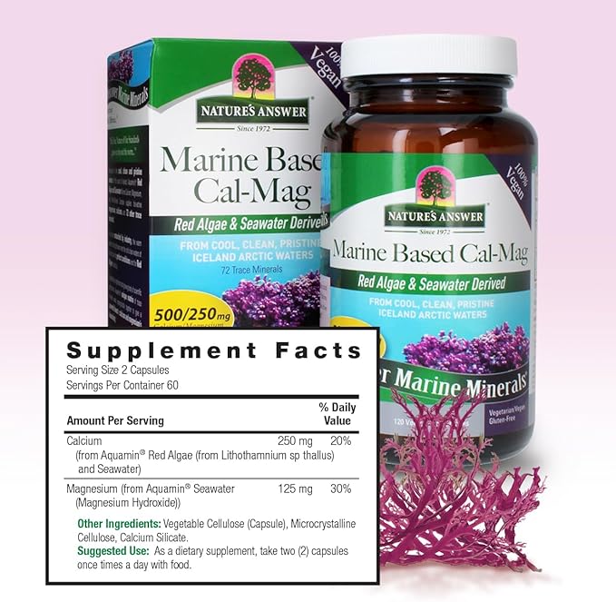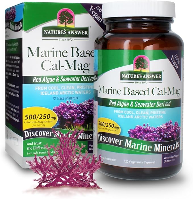 Nature's Answer Calcium Magnesium Capsules 120 Count - Daily Marine Based Magnesium & Calcium Supplement for Sleep & Bone Support - Vegan, Gluten Free, Alcohol Free for Everyone