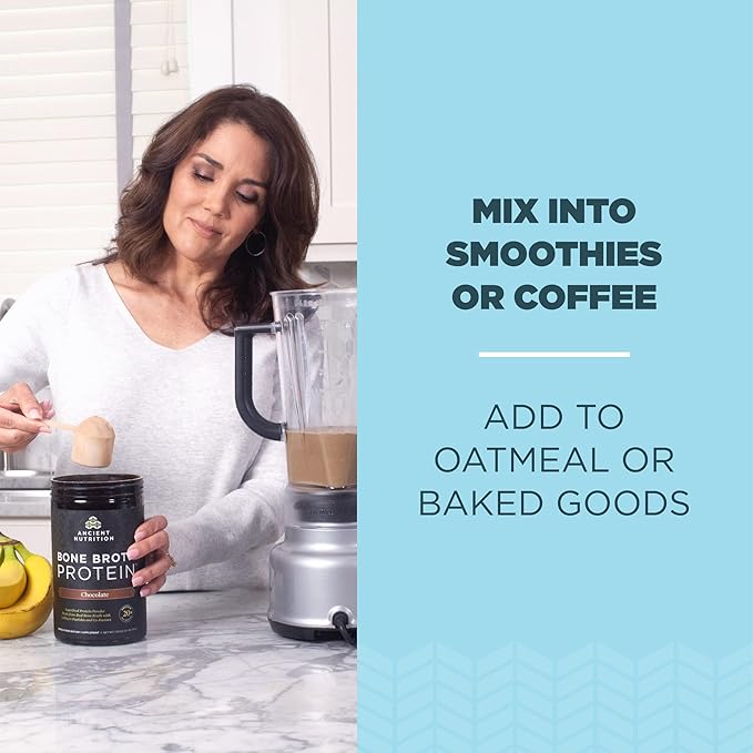 - PACKED WITH PROTEIN – One serving of Ancient Nutrition Bone Broth Protein powder provides 20 grams of protein in 100 calories. Add one scoop to a smoothie, shake or hot drink for healthy gut, joint and immune system support.