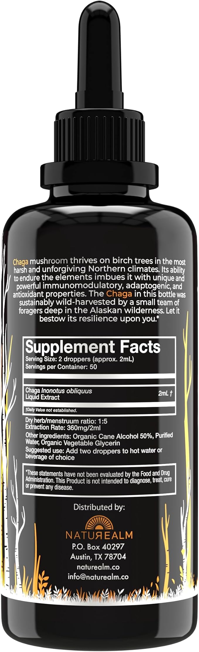 Naturealm Chaga Mushroom Liquid Tincture Supplement – Immune Support, Antioxidant Boost & Hair, Skin, Nail Health, Vegan, Non-GMO – Wild-Harvested Fruiting Bodies, 2 Month Supply