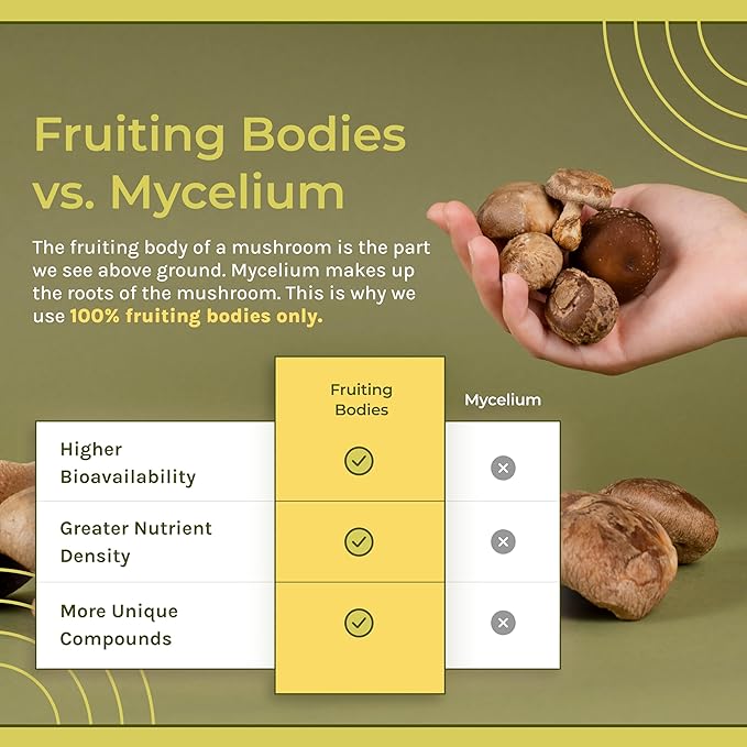 - 100% Mushroom Fruiting Bodies: We dual extract our Chaga mushrooms to help optimize health-promoting compounds. Our hot water process breaks down mushrooms’ cell walls using ultra-purified water to maximize beneficial compounds' bioavailability. This process yields a nutrient-dense mushroom tincture with micro and macronutrient profiles for your wellness and dietary health. This includes more protein and higher beta glucan and antioxidant content.