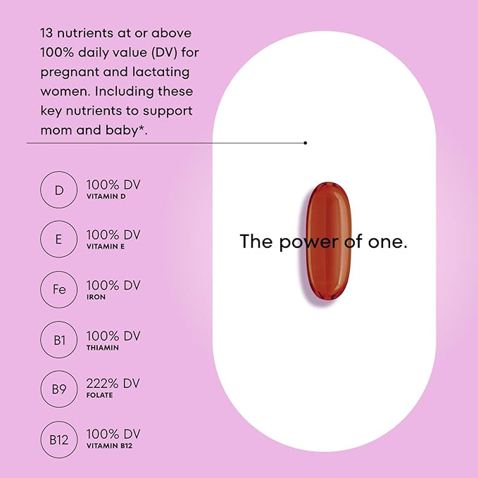 - With key nutrients, like folic acid, DHA, iron and calcium all in one single soft gel