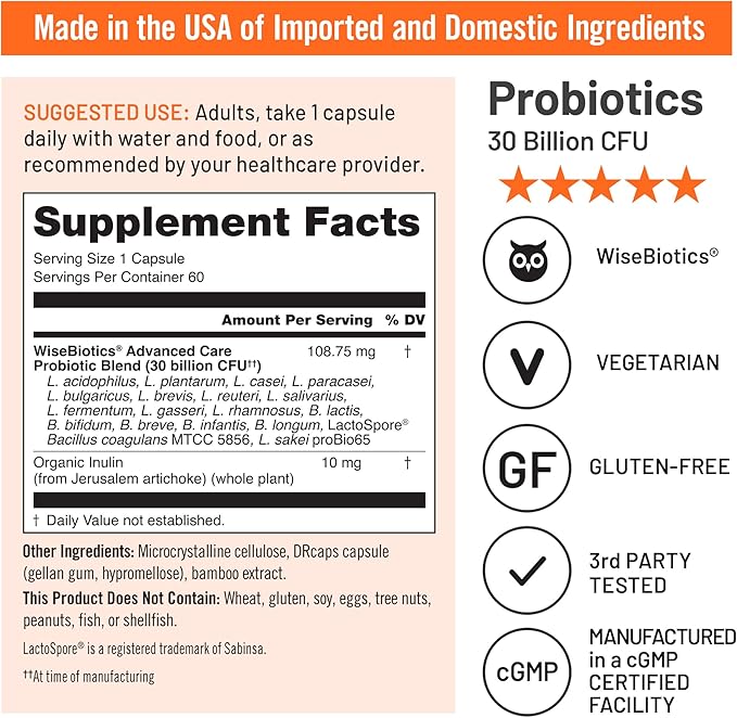 - 30 BILLION CFU PROBIOTICS: This advanced probiotic supplement contains 30 billion CFU of 18 different live strains of gut-healthy bacteria.