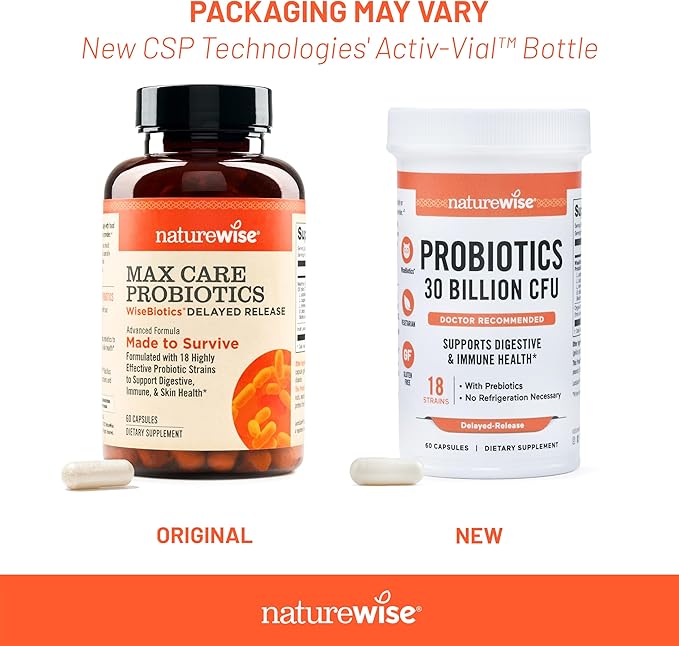 NatureWise Max Probiotics for Women & Men - 30 Billion CFU 18 Strains With Prebiotics - For Gut & Digestive Health - Delayed-Release Capsules, Gluten Free - 60 Capsules[2-Month Supply]
