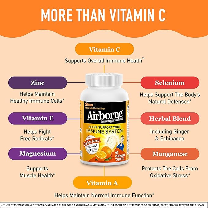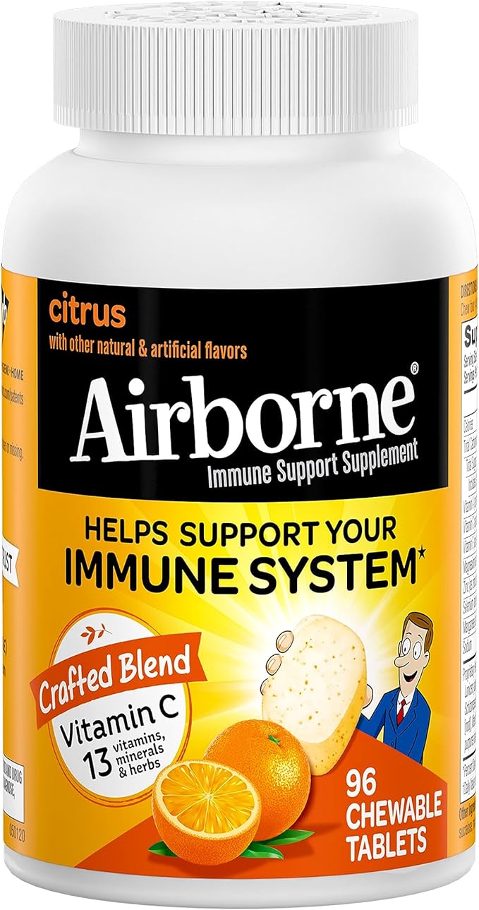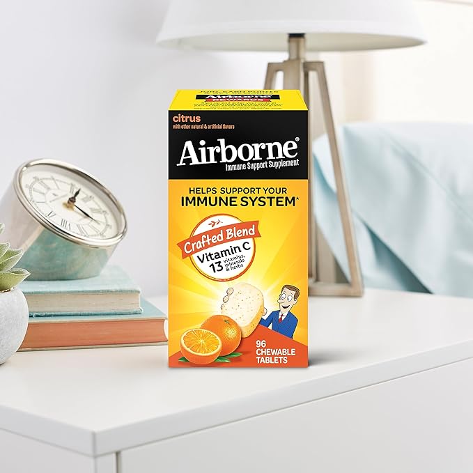 Airborne Vitamin C 1000mg (per Serving) - Citrus Chewable Tablets (96 Count in a Box) - Packaging May Vary