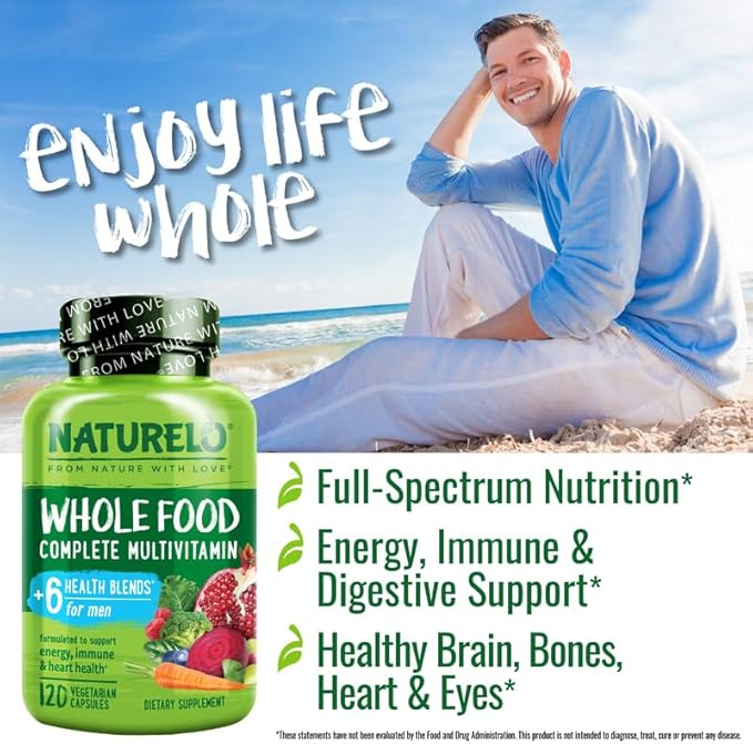 - COMPLETE MULTIVITAMIN FOR MEN: The Naturelo Whole Food Multivitamin for men, a renowned multi vitamins option, is formulated with a blend of organic fruits and vegetables along with essential vitamins and minerals to support health and wellbeing.*