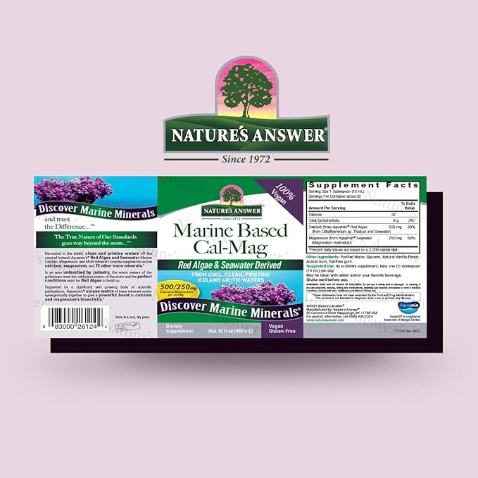 Nature's Answer Marine Based Calcium Magnesium, Vanilla Cream, 16-Ounce | Natural Immune Support | Maintains Healthy Bones | Promote Heart Health | Muscular Function Support