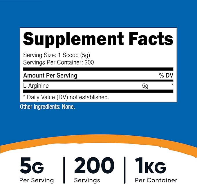 - Product Benefits : Nutricost L-Arginine Powder 1KG - Pure L-Arginine, 5g Per Serving