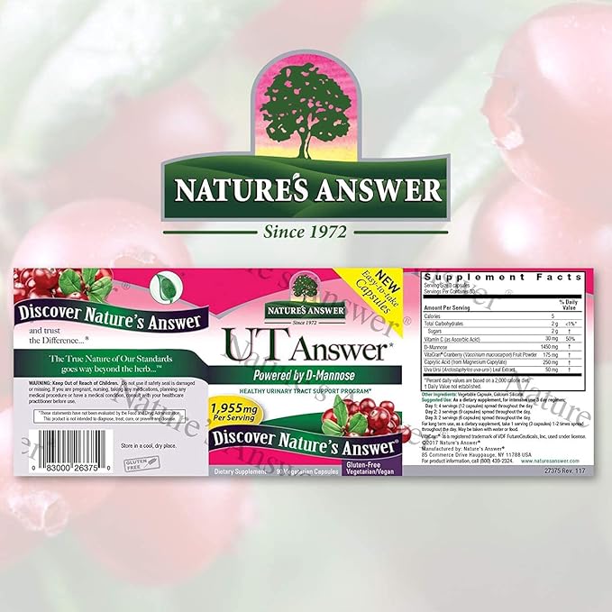 Nature's Answer UT Answer with D-Mannose 1955mg 90-Count | Urinary Tract & Bladder Support | Natural Detox | Gluten-Free, Vegan, Kosher | Single Count