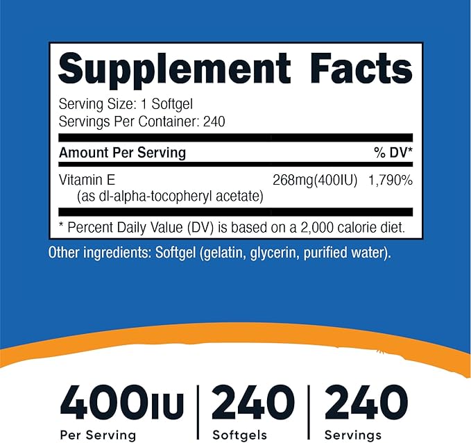 Nutricost Vitamin E 400 IU, 240 Softgel Capsules (3 Bottles)