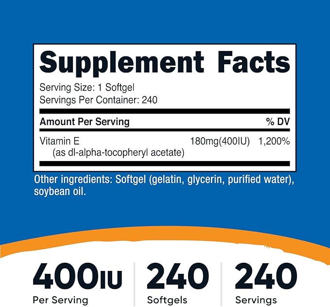 - 240 Vitamin E Softgel Capsules Per Bottle