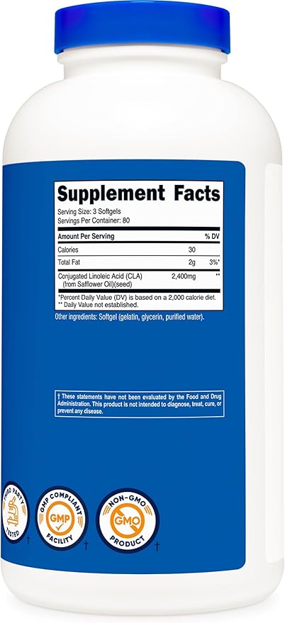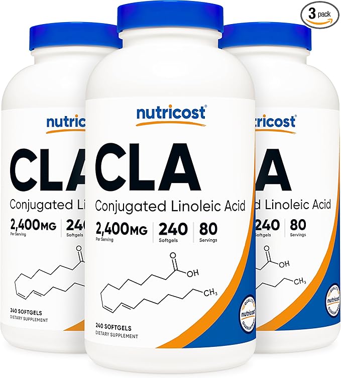 Nutricost CLA (Conjugated Linoleic Acid) 2,400mg, 240 Softgels - Gluten Free, Non-GMO, 800mg Per Softgel (3 Bottles)