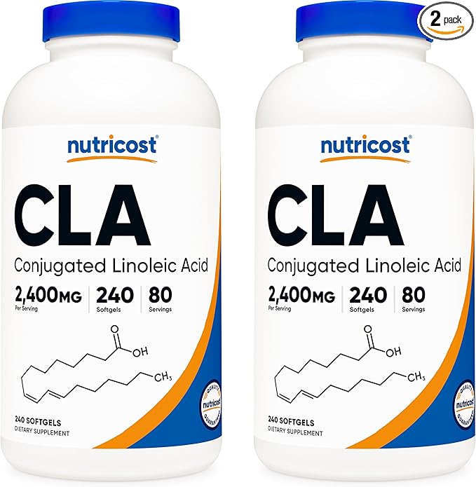Nutricost CLA (Conjugated Linoleic Acid) 2,400mg, 240 Softgels - Gluten Free, Non-GMO, 800mg Per Softgel (2 Bottles)