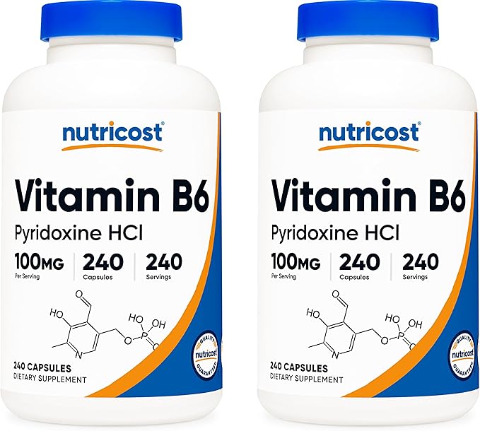 Nutricost Vitamin B6 (Pyridoxine HCl) 100mg, 240 Capsules (2 Bottles)
