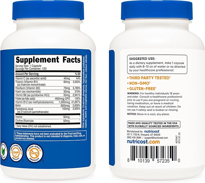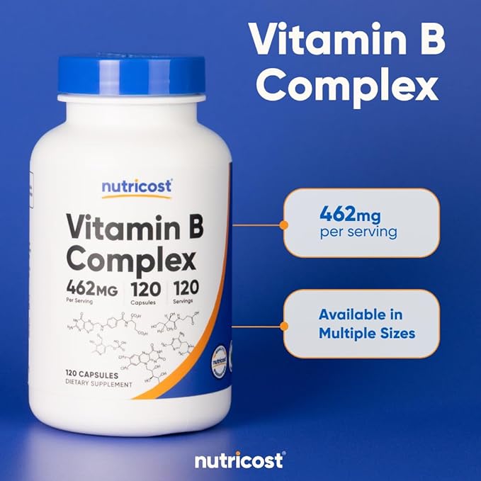 Nutricost High Potency Vitamin B Complex 462mg, 120 Capsules - with Vitamin C - Energy Complex