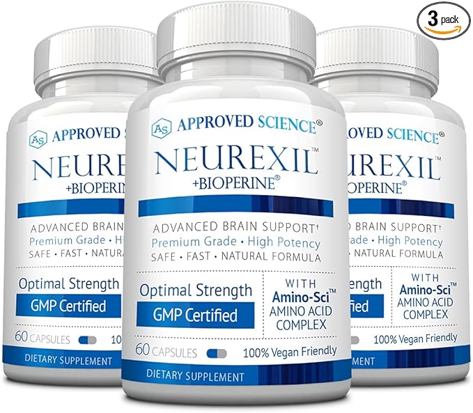 Approved Science Neurexil - Natural Nootropic Support with DMAE - Enhance Brain Function, Sharpen Clarity, Boost Memory - L-Tyrosine, Ginkgo Biloba, Huperzine A, BioPerine - 3 Month Supply