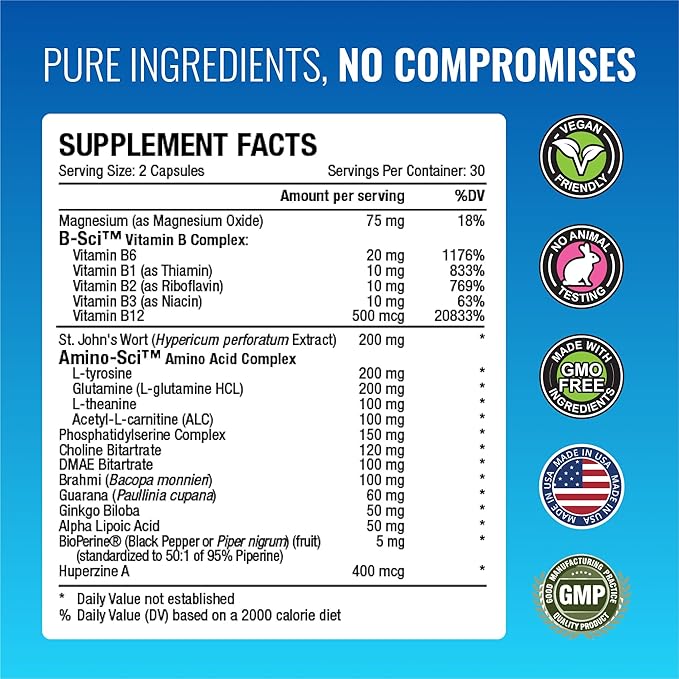 - Bioavailability - Neurexil contains BioPerine, which promotes faster absorption of the nutrients and allows the ingredients to work more quickly.
