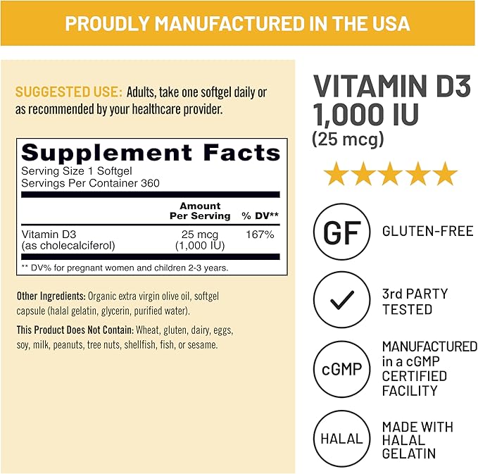- NATURALLY-SOURCED, NON-GMO: These Vitamin D3 immune support and bone health supplements are formulated with a naturally-sourced vitamin D3 ingredient, and are gluten-free and non-GMO. Packaging may vary due to high demand, same great product and ingredients.