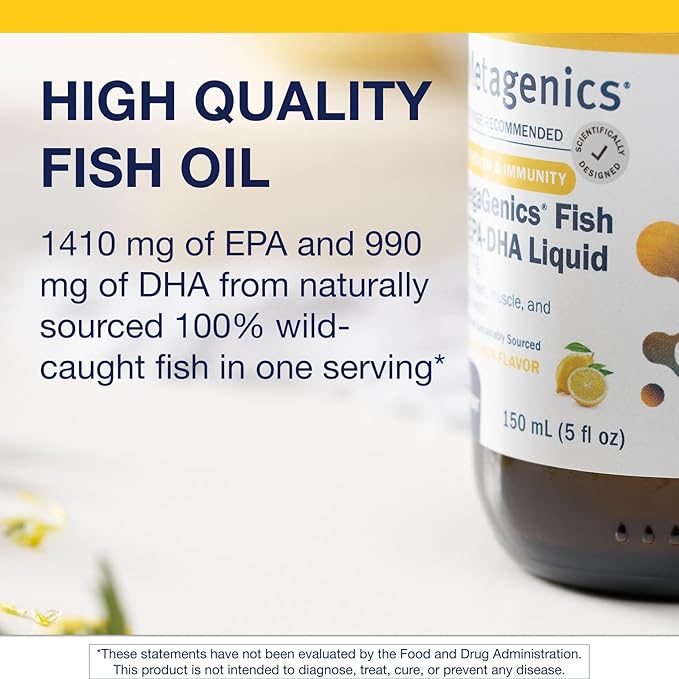 - Fish Oil Benefits: Metagenics OmegaGenics Fish Oil EPA DHA 2400 mg Liquid has 5-in-1 benefits—supports heart, brain, immune, eye, and musculoskeletal health*