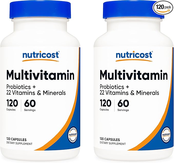 Nutricost Multivitamin with Probiotics 120 Vegetarian Capsules (2 Bottles) - Packed with Vitamins & Minerals