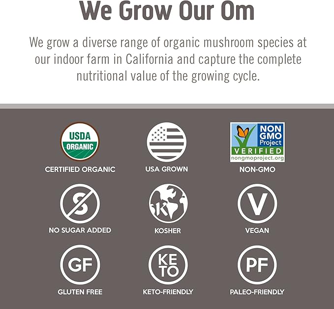 - Premium Mushroom Supplements - USDA Certified 100% organic, non-GMO, gluten-free, vegan, grown in the USA, paleo-friendly, keto-friendly, kosher