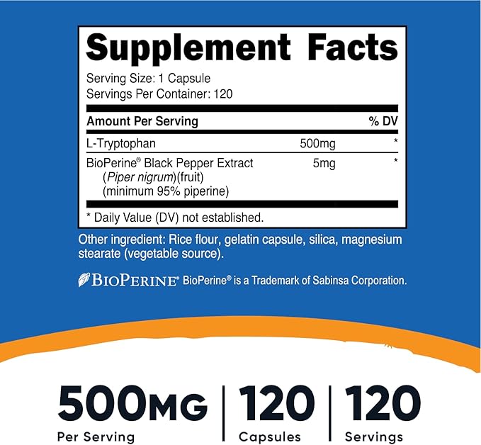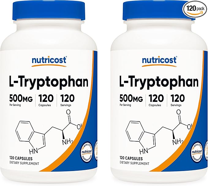 Nutricost L-Tryptophan 500mg, 120 Capsules (2 Bottles)