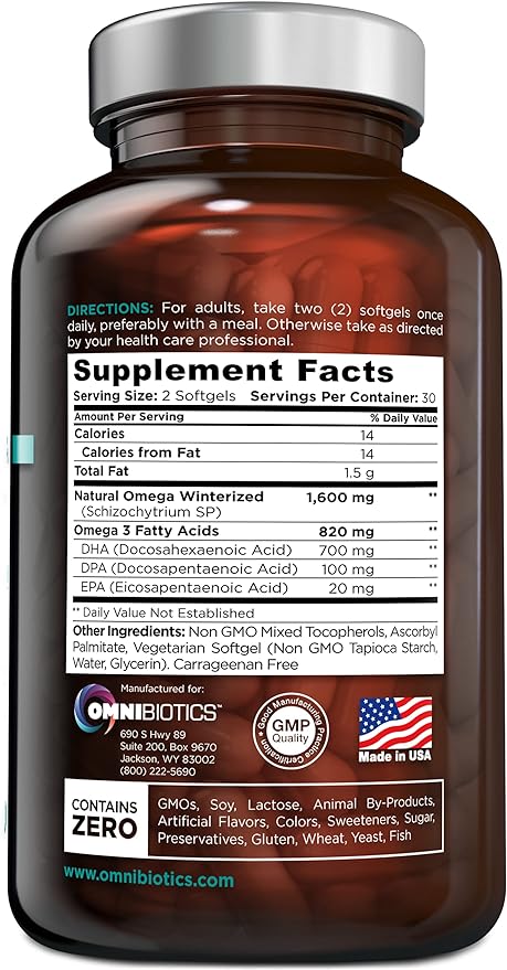 - πππ% πππππππ, πππ-πππ, & π πππ π πππ πππππ ππ πππππππππ β OmniBiotics Vegan Omega-3 DHA+EPA is crafted with only the purest ingredients, free from gluten, soy, nuts, dairy, sugar, and artificial additives. Produced in an NSF-certified, cGMP facility in the USA, our supplement meets the highest standards for quality and safety. Enjoy a clean, natural supplement that supports your health and well-being.