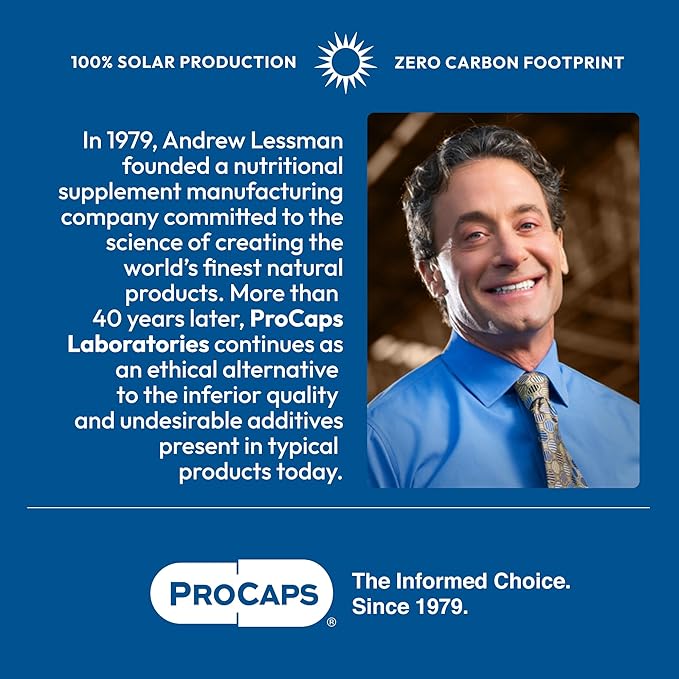- ETHICAL & ECO-FRIENDLY. ZERO CARBON FOOTPRINT – Uniquely committed to your health and the health of the planet, ProCaps’ facilities are 100% Solar Powered with a Zero Carbon Footprint and an LEED GOLD green building status. ALL ProCaps bottles are made from 100% recyclable post-consumer resin. Plus, Andrew Lessman and ProCaps are the largest donor of prenatal vitamins in the world (over 1.5 billion capsules donated to date). ProCaps, the Informed Choice for Nutritional Supplements.