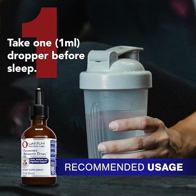 Quantum Nutrition Labs Fermented Melatonin Drops - Melatonin Liquid for Adults, Sleep Support, Made with Organic Ingredients, Vegan Friendly - 2 Fl Oz (54 Servings)