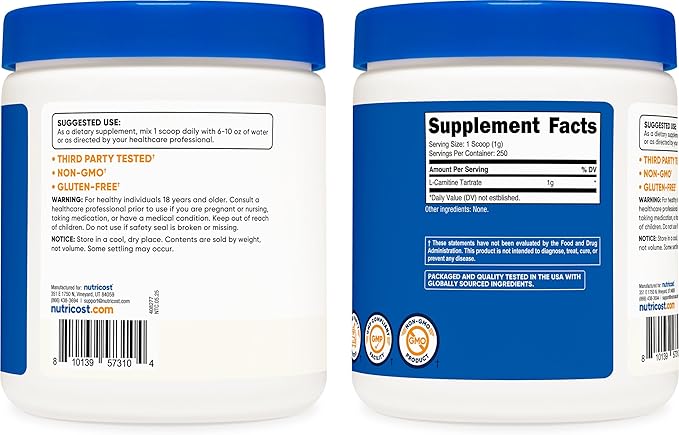 - 250 Grams of L-Carnitine Tartrate Per Bottle